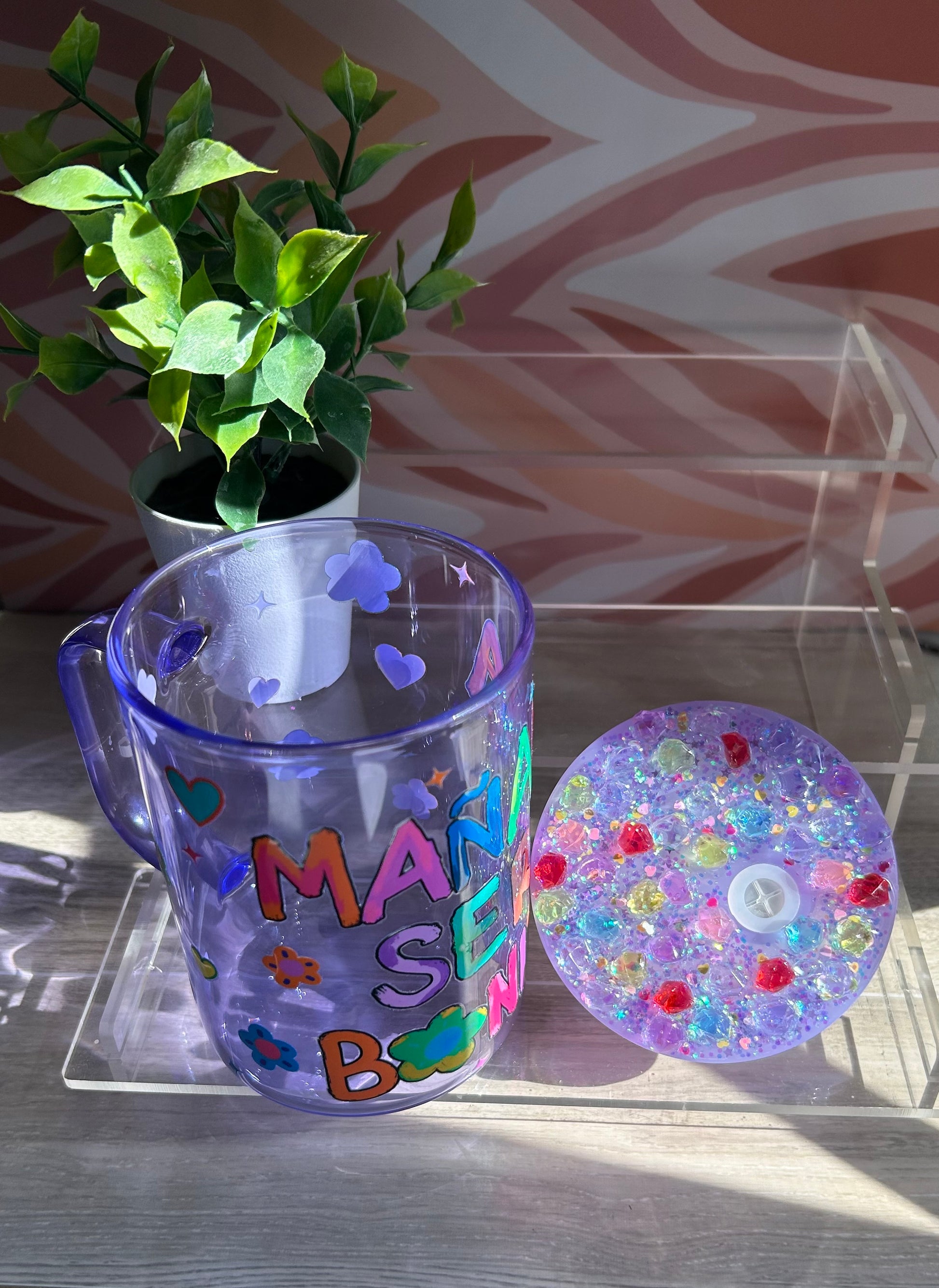 17oz jelly colored tumbler cup, decorated lid.